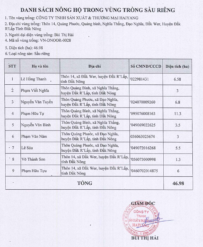 Tên đơn vị/nhà sản xuất: Công ty sản xuất và thương mại HaiYang
